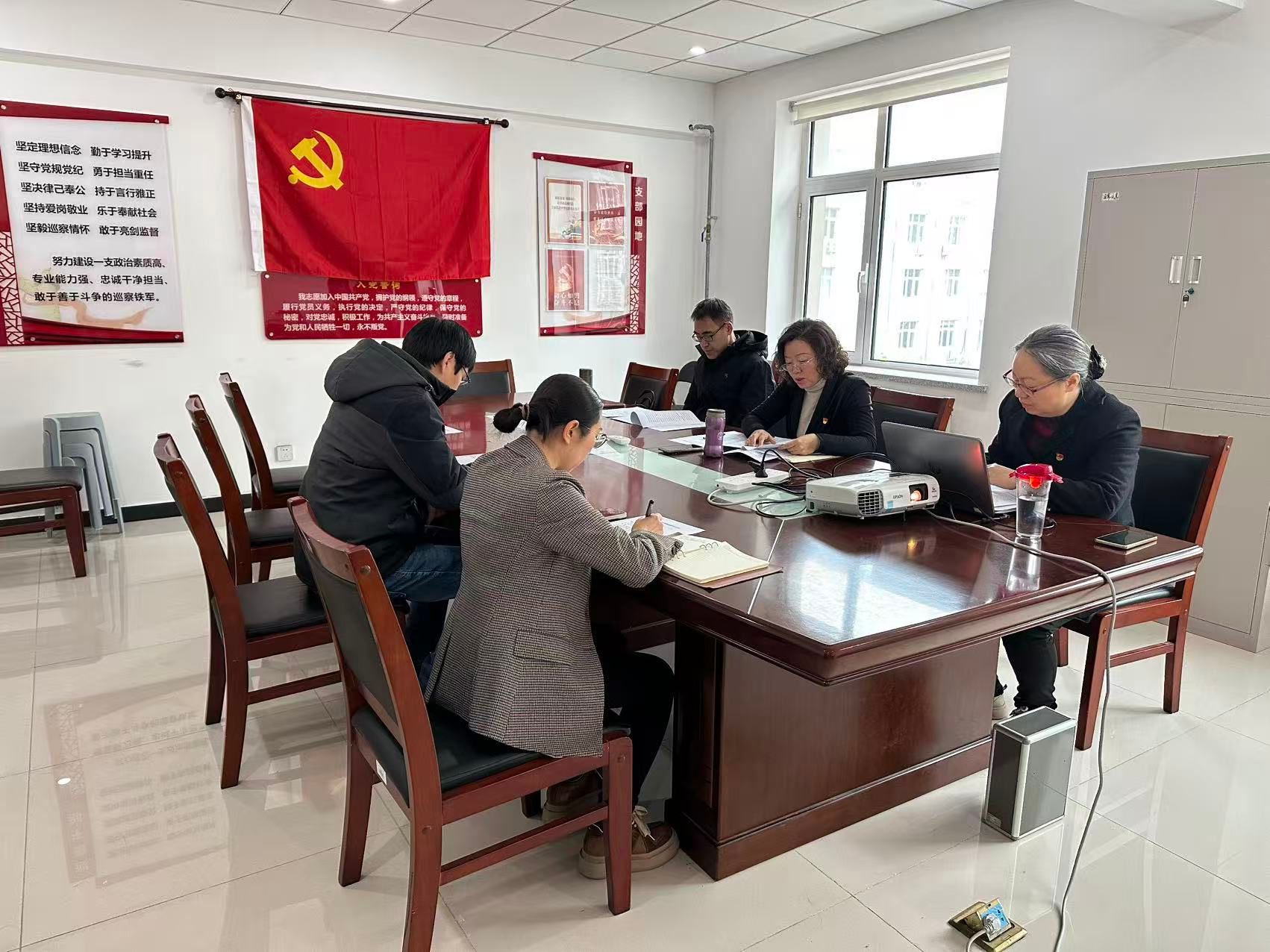 2026年2月27日上午,巡察办党支部在纪检楼301室召开党员大会暨换届选举会议。会议由党支部书记鞠娴妹同志主持,机关党委委员、战略办公室主任李伟华同志列席会议并指导。会议应到5人,实到5人,符合开会条件。